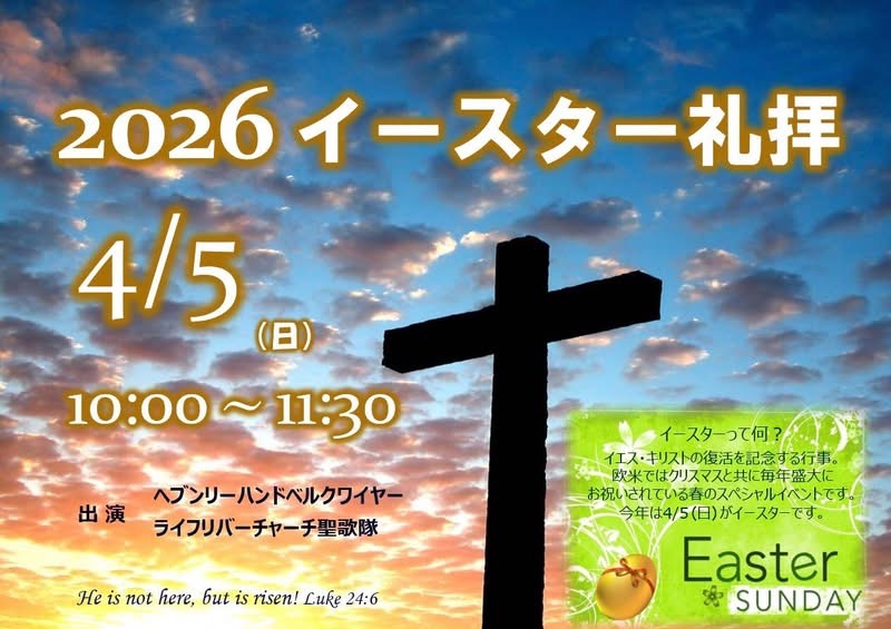 4/5(日)イースター礼拝 4/12(日)イースター召天者記念礼拝、ハッピー・イースター・パーティーのお知らせ (^-^)/2026年03月21日