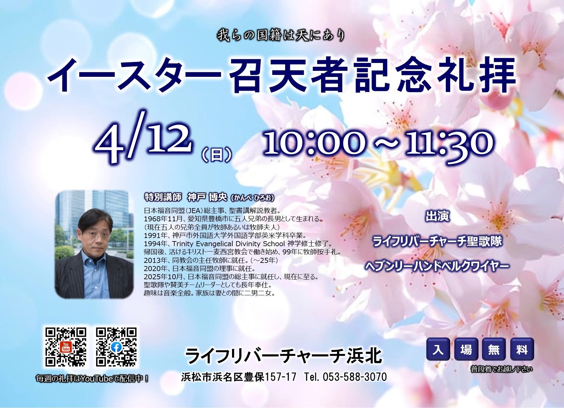 ライフリバーチャーチでは、以下の日程で記念イベントを開催します。✳︎イースター礼拝