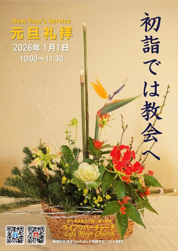 ライフリバーチャーチでは、1月1日に元旦礼拝、1月4日に新年最初の主日礼拝を行い、2026年の皆さんの守りと祝福をお祈りします。
